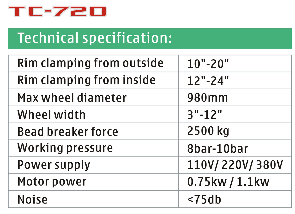 Lastik değiştirici TC-720 / araba lastiği değiştirici / lastik değiştirme makinesi / lastik makinesi