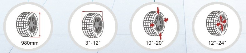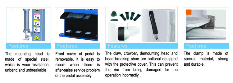 5) Pençe, levye, demontaj başlığı ve boncuk kırma pabucu isteğe bağlı olarak koruyucu kapak ile donatılmıştır.Bu, jantın yanlış çalışma nedeniyle hasar görmesini önleyebilir.