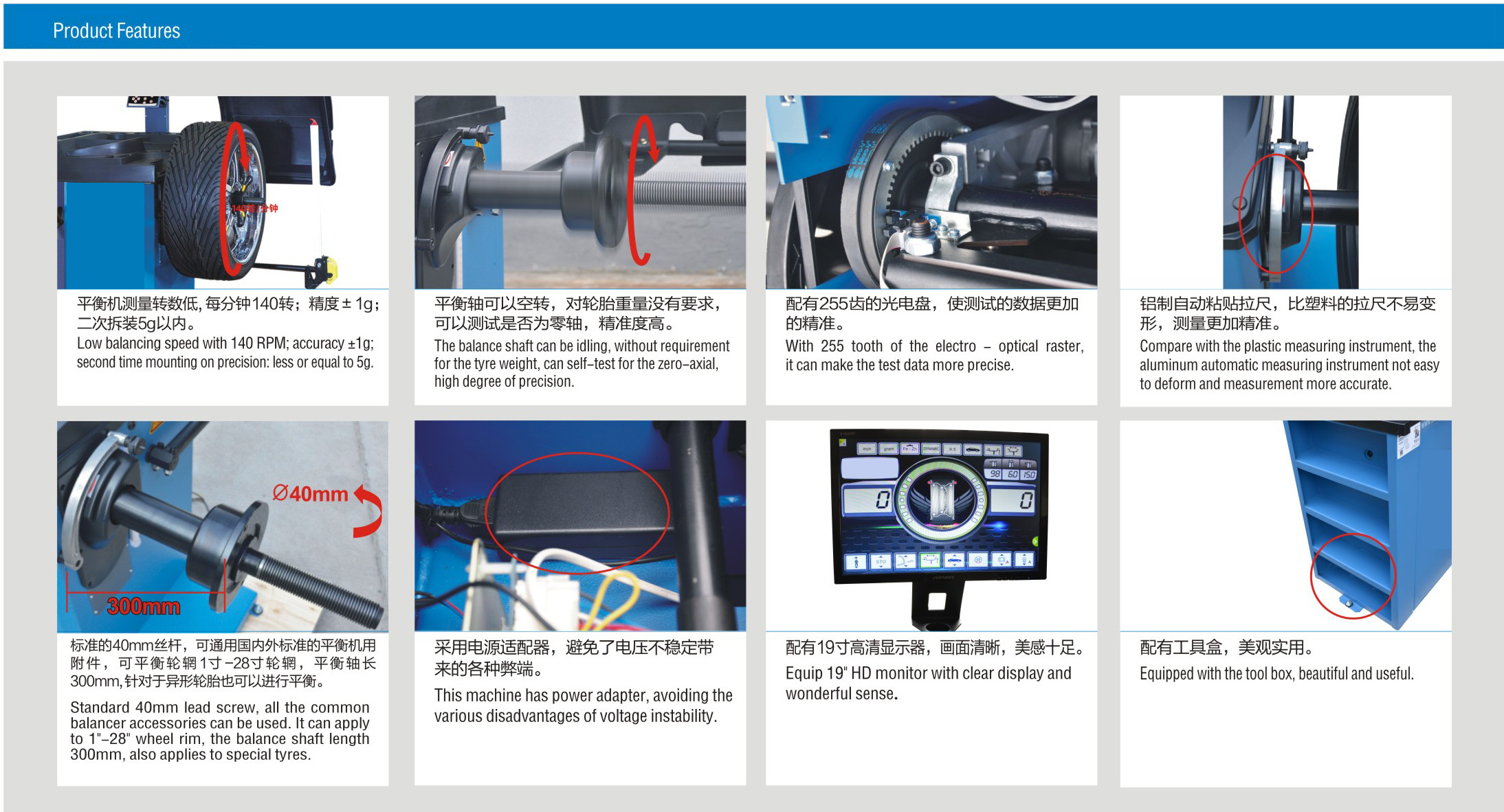 WB-980 LCD tekerlek dengeleyici teknik özellikleri: